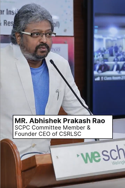 The event began with a Welcome Note by Mr. Abhishek Prakash Rao, SCPC Committee Member and Founder-CEO of CSRLSC, followed by Opening Remarks from Prof. Chandravadan Goritiyal, Professor and Program In-charge for Operations at Weschool.