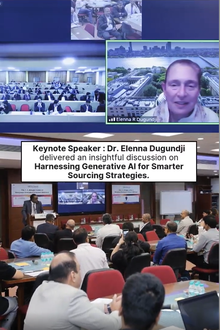 • Dr. Elenna Dugundji shared an insightful session on “Harnessing Generative AI for Smarter Sourcing Strategies,” illustrating the game-changing role of AI in procurement.